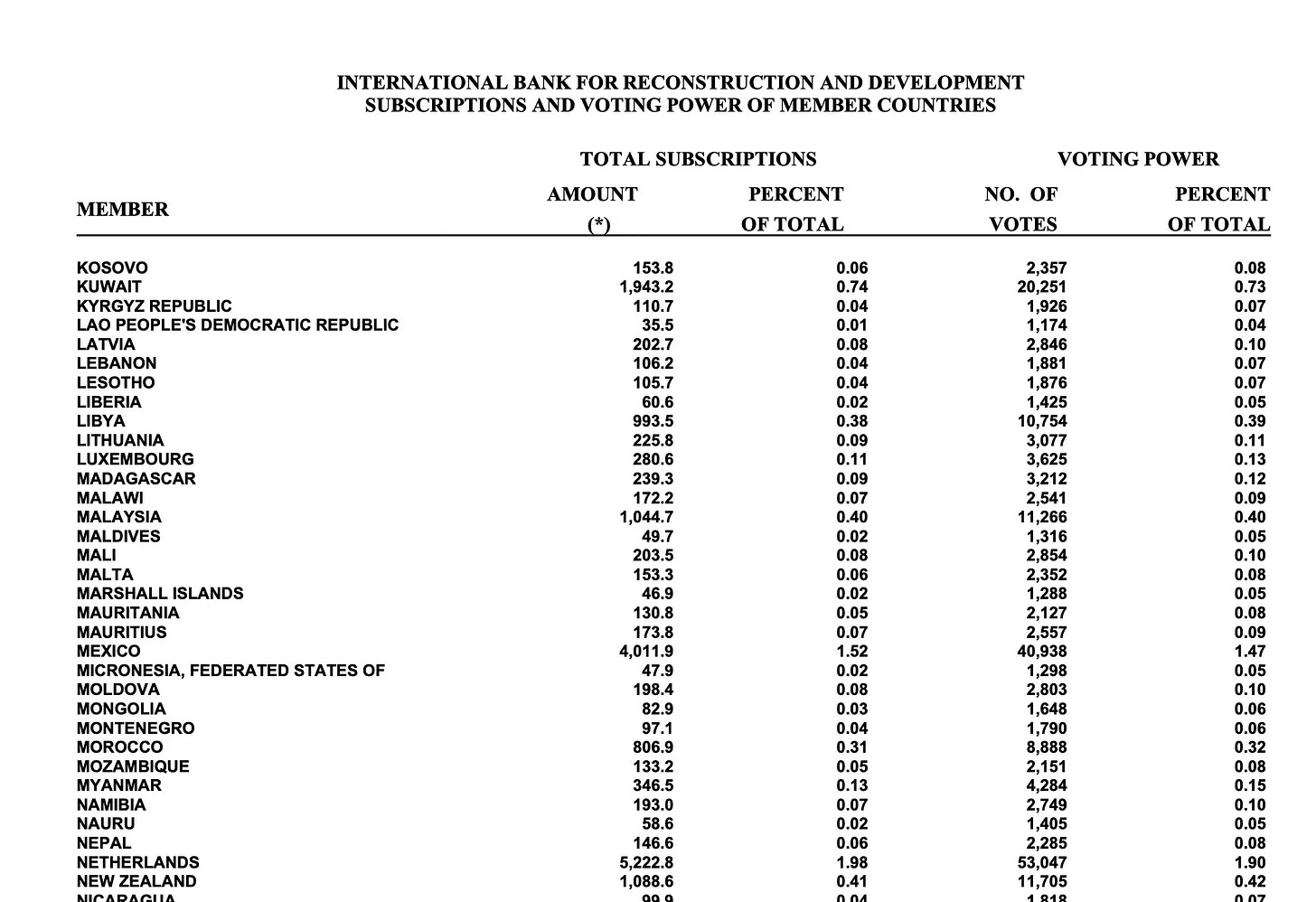 Αυτό που διακρίνει τους θεσμούς του Bretton Woods από τα Ηνωμένα Έθνη είναι η διαφορά στη δομή της ψηφοφορίας. Ενώ στο σύστημα του ΟΗΕ κάθε έθνος έχει μία ψήφο, η Παγκόσμια Τράπεζα (και το ΔΝΤ) σταθμίζει τις σχετικές ψήφους και, κατά συνέπεια, μερικοί είναι πιο ίσοι από άλλους.