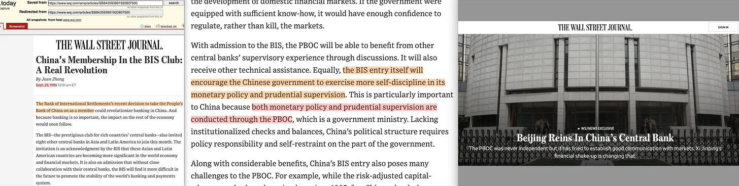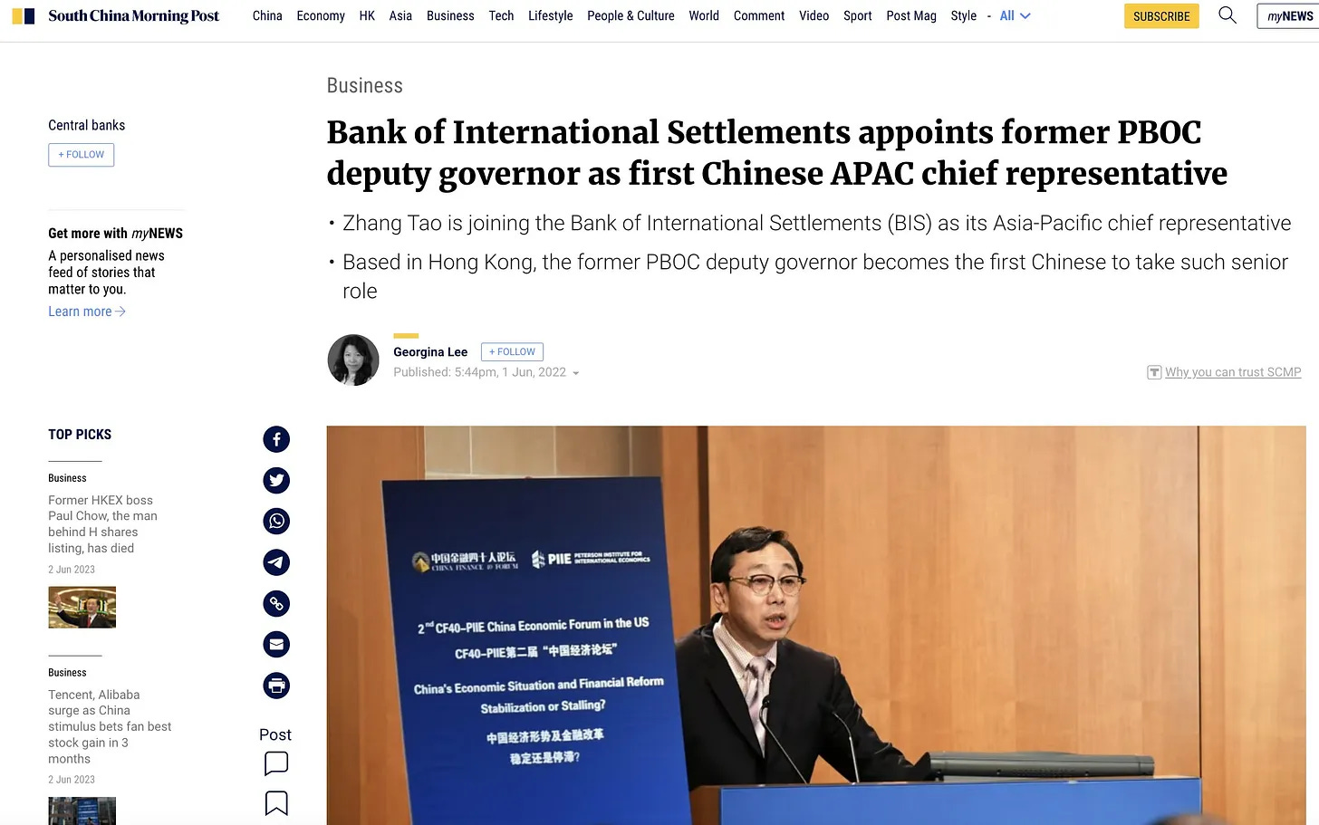 Αυτό, όμως, δεν συνέβη. Στην πραγματικότητα, λίγους μήνες αργότερα, η BIS διόρισε έναν πρώην αναπληρωτή διοικητή της PBOC σε ανώτερη θέση εντός της BIS.