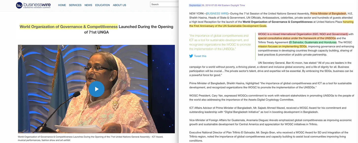 Επίσης, είδαμε μια άλλη προσπάθεια από την πλευρά της Κίνας το 2016, όταν προσπάθησαν να καταλάβουν κρίσιμες μελλοντικές υποδομές με την ατυχή «Παγκόσμια Οργάνωση Διακυβέρνησης και Ανταγωνιστικότητας» στα Ηνωμένα Έθνη το 2016.