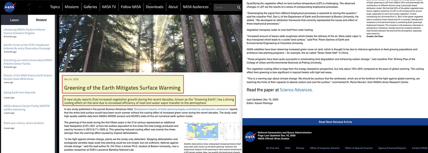 2020 Το πρασίνισμα της Γης μετριάζει την επιφανειακή θέρμανση [117].