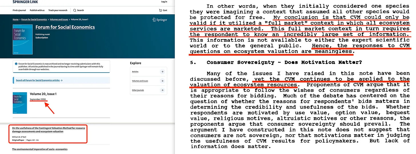 Ο παραλογισμός αυτού του μοντέλου αποτίμησης - που χρησιμοποιείται για την αποτίμηση της χρήσης των φυσικών πόρων με διάφορες ιδιότητες, συμπεριλαμβανομένης της χρήσης για αναψυχή - καλείται να αποτιμηθεί παρασκηνιακά.