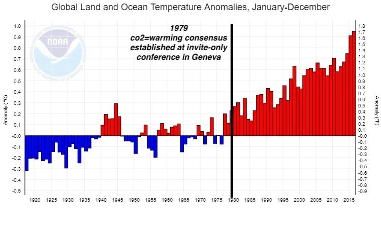 Και μόλις συμφωνήθηκε αυτή η «συναίνεση», οι θερμοκρασίες υποτίθεται ότι άρχισαν να αυξάνονται με έναν σχεδόν κωμικό, γραμμικό τρόπο - ένας παραλογισμός από μόνος του, δεδομένου ότι κανένα απολύτως μοτίβο δεν είχε υποδειχθεί στα δεδομένα θερμοκρασίας μέχρι αυτό το σημείο, ένα σημείο που έγινε επανειλημμένα αποδεκτό σε εκθέσεις που δημοσιεύτηκαν μέχρι τις αρχές της δεκαετίας του ‘80.