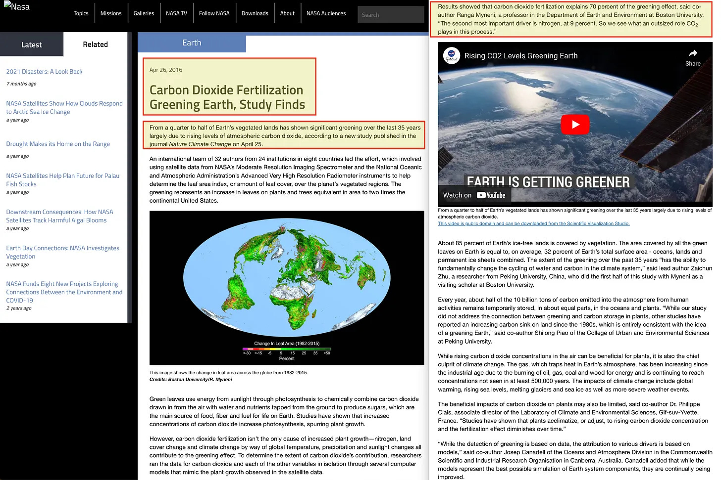 2016 Η λίπανση με διοξείδιο του άνθρακα πρασινίζει τη Γη, σύμφωνα με μελέτη [115].