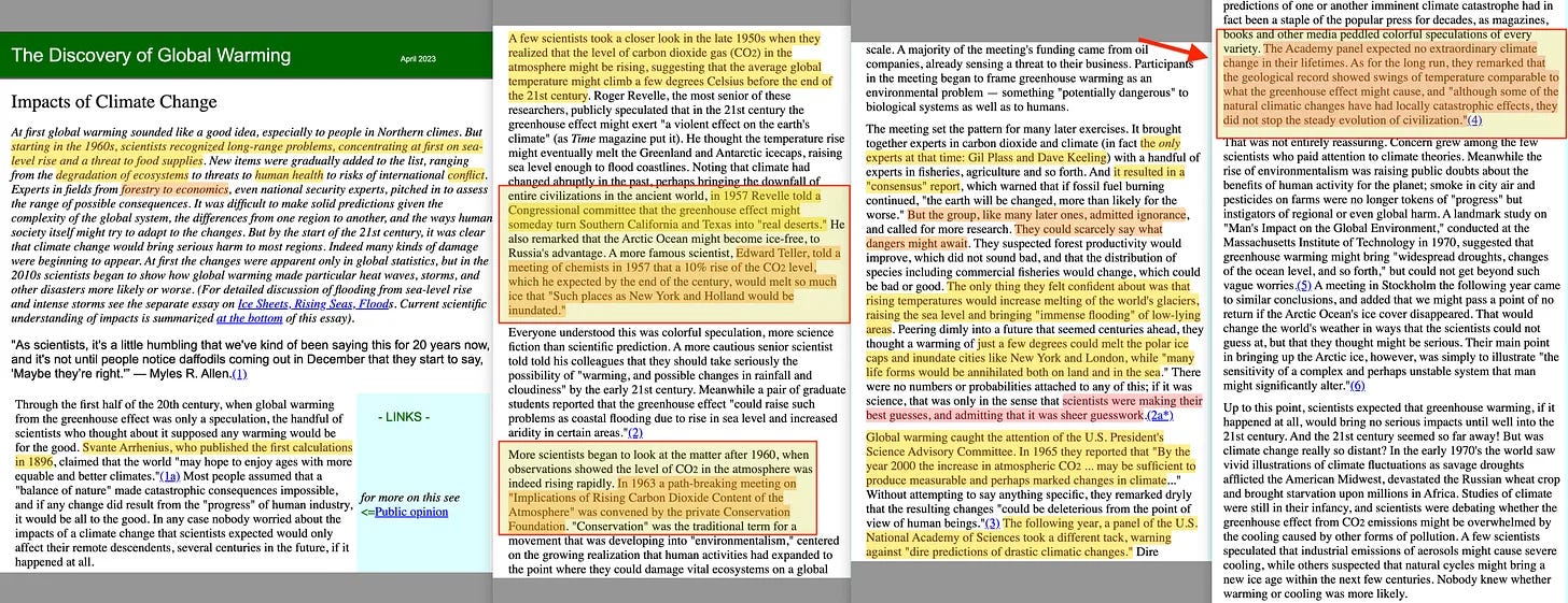 Παρεμπιπτόντως, ο Bert Bolin έγραψε ακριβώς ένα τέτοιο χρονολόγιο [3]. Αλλά δεδομένου ότι ο ίδιος ο Bolin το 1976 ενώπιον του Κογκρέσου των ΗΠΑ δήλωσε ότι γνώριζαν πολύ λίγα (εκτός από το ότι το CO2 είναι τροφή για τα φυτά), για να γυρίσει πίσω, προσθέτοντας στην παράλογη «Έκκληση προς τα Έθνη» της Παγκόσμιας Διάσκεψης για το Κλίμα το 1979, τον αποκλείει από έναν αξιόπιστο, αμερόληπτο παράγοντα.