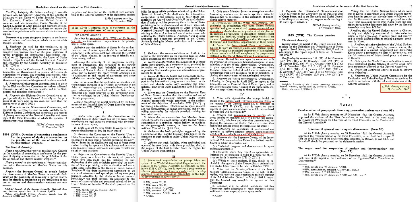 1962 Διεθνής συνεργασία για την ειρηνική χρήση του διαστήματος [22].