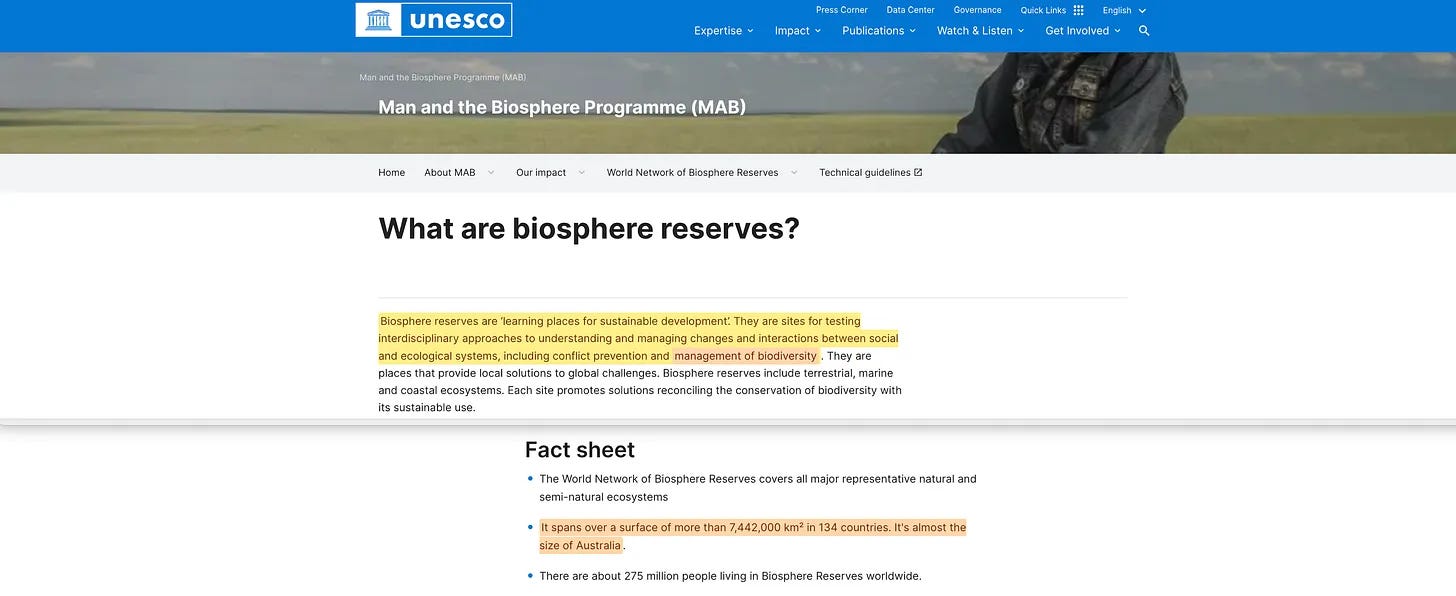 Μητρική οργάνωση των Αποθεμάτων Βιόσφαιρας, τα οποία σήμερα περιλαμβάνουν μια έκταση γης στο μέγεθος της Αυστραλίας [35].
