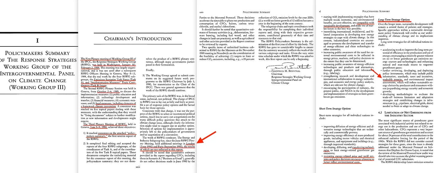 Η πρώτη αξιολόγηση της IPCC περιελάμβανε επιφανειακή γλώσσα σχετικά με την εμπορία αδειών εκπομπών.