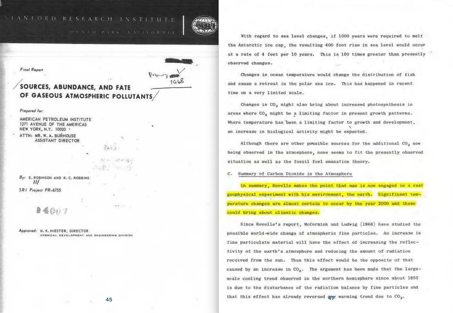Υπάρχουν πολλές, πολλές τρομερές προβλέψεις, αλλά αυτή είναι σημαντική, δεδομένου ότι διάφορα γεγονότα συμπίπτουν το ίδιο έτος. Η αναφορά του Roger Revelle είναι επίσης αξιοσημείωτη, καθώς έλαβε επιχορήγηση ύψους 1 εκατ. δολαρίων από το Ίδρυμα Rockefeller το 1954 - το οποίο, εκείνη την εποχή, αποτελούσε κολοσσιαίο χρηματικό ποσό.