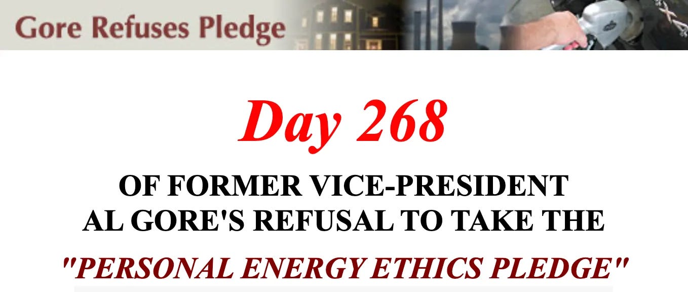 Ο Gore κυκλοφορεί ένα εξαιρετικά αμφιλεγόμενο ντοκιμαντέρ, το οποίο περιέχει μια λιτανεία λαθών και λανθασμένων προβλέψεων. Επιπλέον, αρνείται να αναλάβει δέσμευση ενεργειακής ηθικής: «κανόνες για σένα, αλλά όχι για μένα» [96].