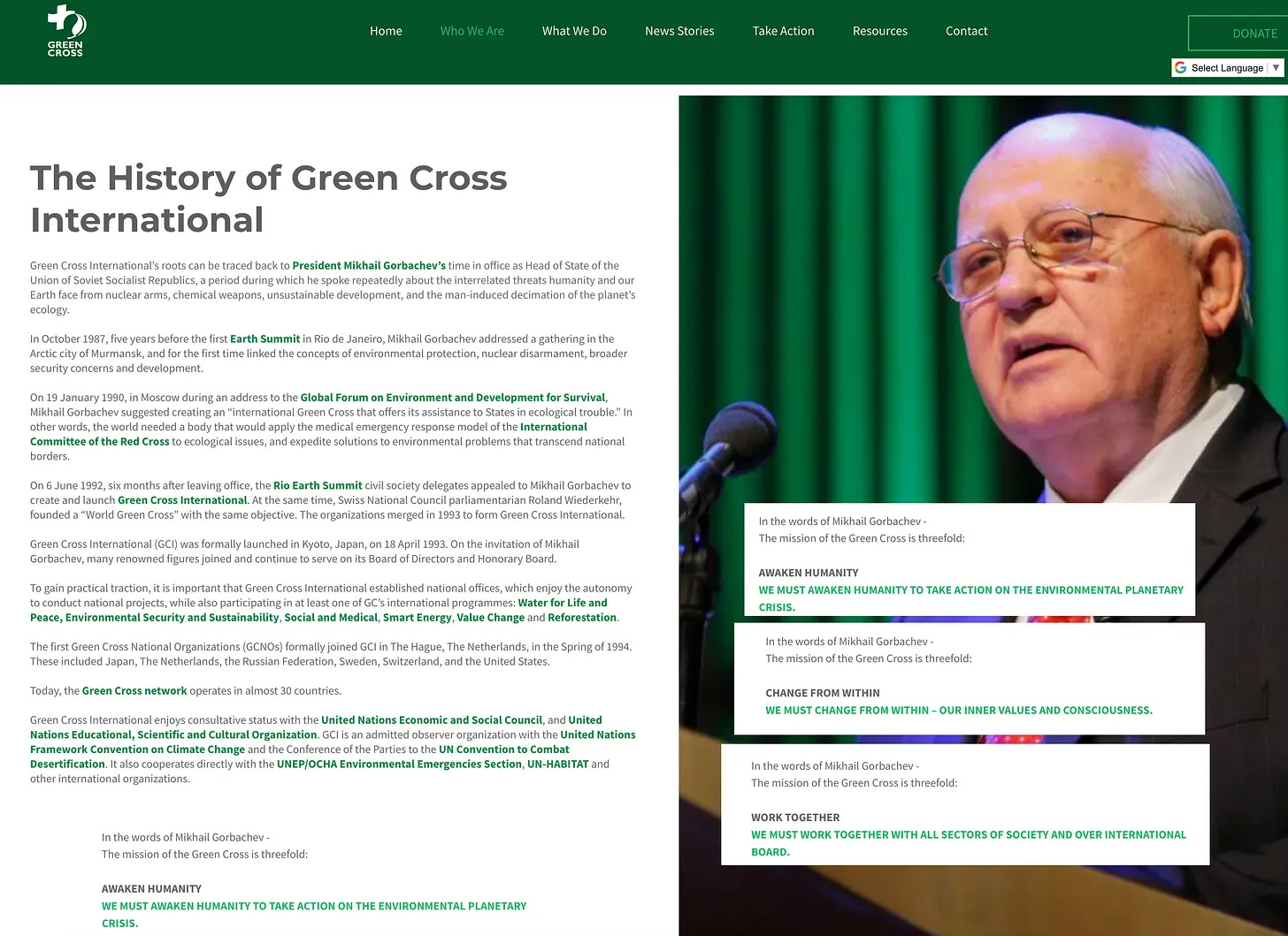 Ο Mikhail Gorbachev, φυσικά, πιστώνεται με τη συνίδρυση του Διεθνούς Πράσινου Σταυρού [10] -