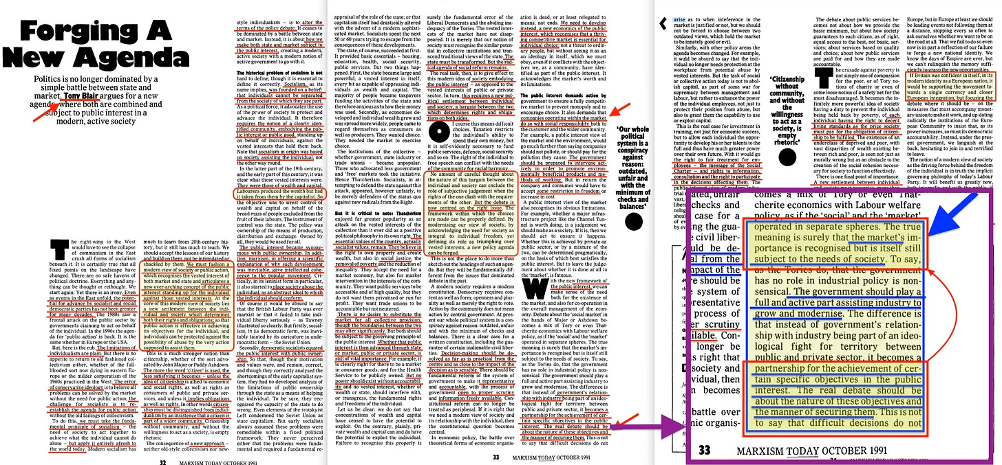 Και αυτή ακριβώς είναι η άποψη του Tony Blair στο άρθρο του Marxism Today του 1991 [14] -
