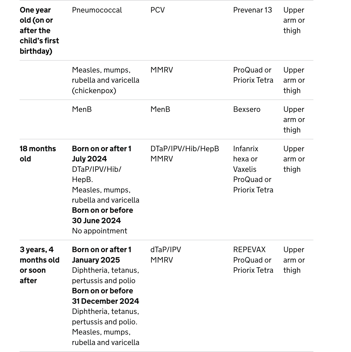 Η ιστοσελίδα της βρετανικής κυβέρνησης «Συνηθισμένοι παιδικοί εμβολιασμοί» παραθέτει επίσης το πρόγραμμα παιδικών εμβολιασμών για το 2026, το οποίο περιλαμβάνει μόνο το MMRV. Έτσι, παρά την «προσφορά», οι γονείς δεν έχουν τη δυνατότητα να επιλέξουν μεταξύ MMR και MMRV.
