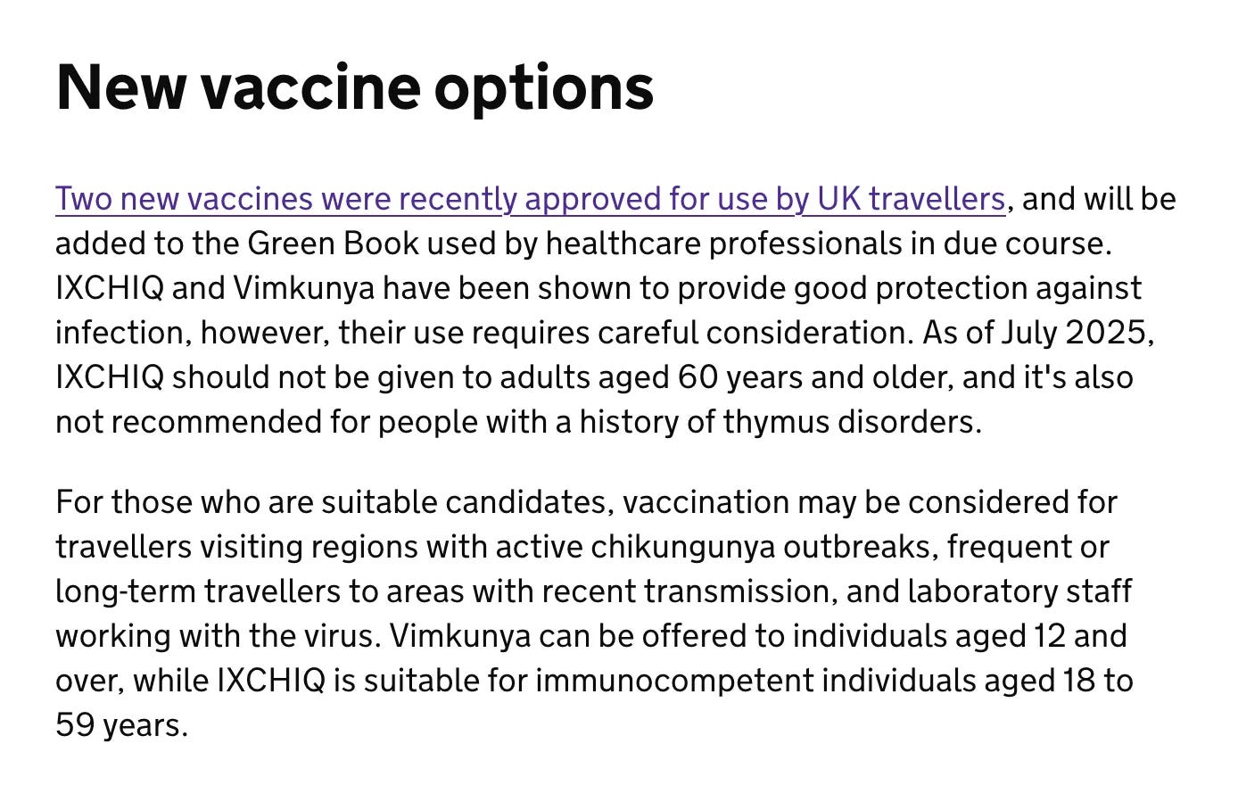 Και τι έκπληξη - το UKHSA αναφέρει ότι όχι ένα αλλά δύο εμβόλια για τον chikungunya έχουν πρόσφατα «εγκριθεί για χρήση».