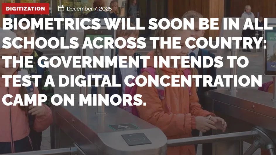 Η ρωσική κυβέρνηση επεξεργάζεται την τροποποίηση της ομοσπονδιακής νομοθεσίας για να επιτρέψει στα σχολεία όλης της χώρας να παρακολουθούν και να ταυτοποιούν τους μαθητές με τη χρήση βιομετρικών στοιχείων, ανέφερε η Kommersant στις 3 Δεκεμβρίου. Τα σχέδια για ένα τυποποιημένο «βιομετρικό σύστημα τουρνικέ» για τα ρωσικά σχολεία δοκιμάζονται ήδη στο Ταταρστάν.
