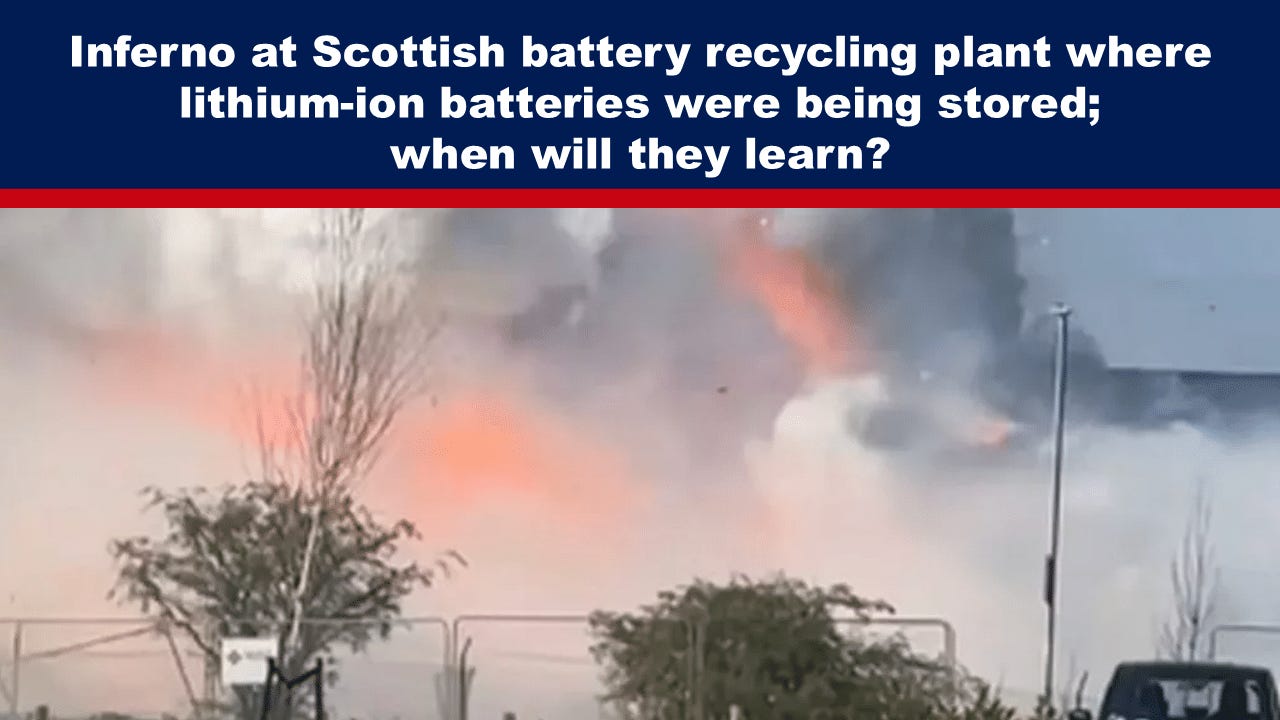 Inferno at Scottish battery recycling plant where lithium-ion batteries were being stored; when will they learn? - The Expose