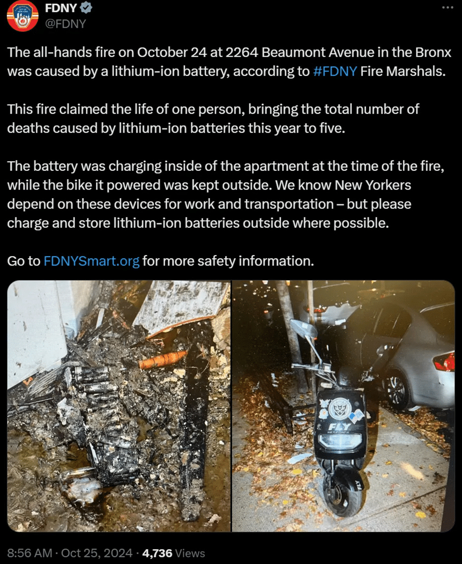 Το περιστατικό αυτό συνέβη μόλις λίγες ημέρες μετά από μια άλλη τραγωδία που σχετίζεται με μπαταρίες ιόντων λιθίου στο Belmont της Νέας Υόρκης, όπου μια πυρκαγιά, που φέρεται να προκλήθηκε από έκρηξη μπαταρίας, σκότωσε έναν άνθρωπο και τραυμάτισε σοβαρά έναν άλλο. Σύμφωνα με το News12, το περιστατικό στο Belmont οδήγησε σε μια μεγάλη αντίδραση έκτακτης ανάγκης, υπογραμμίζοντας τους σαφείς κινδύνους που συνδέονται με τις μπαταρίες ιόντων λιθίου, τεχνολογία που συχνά προβάλλεται ως απαραίτητη για το κίνημα της «καθαρής ενέργειας», παρά την εγγενή αστάθεια και τον κίνδυνο θερμικής διαφυγής.