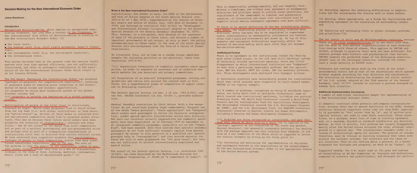 Έχουμε επίσης ένα κεφάλαιο σχετικά με τη λήψη αποφάσεων για τη Νέα Διεθνή Οικονομική Τάξη - το οποίο, λογικά, θα πρέπει να είναι γεμάτο με λεπτομέρειες σχετικά με τη δομή του δημόσιου και ιδιωτικού τομέα.