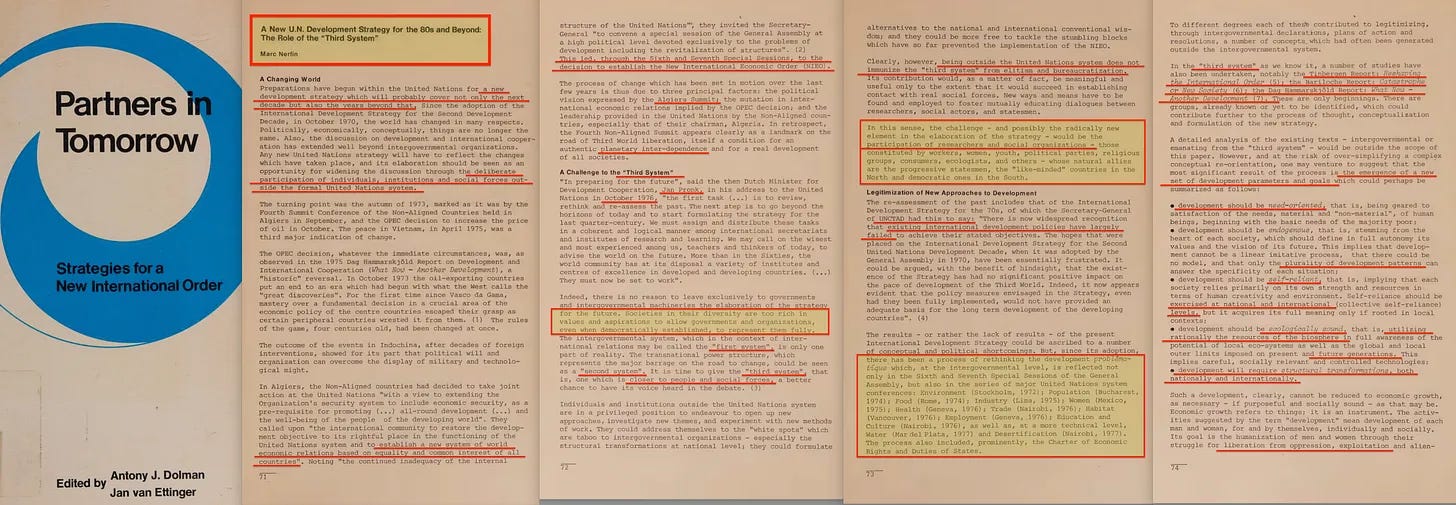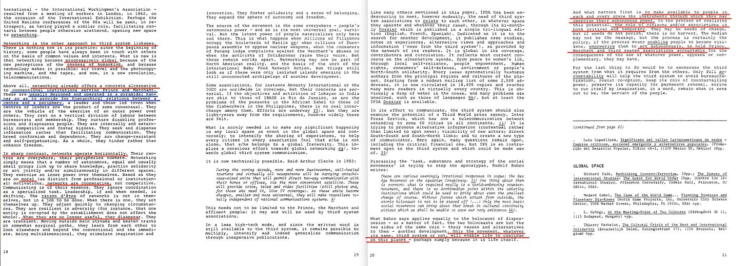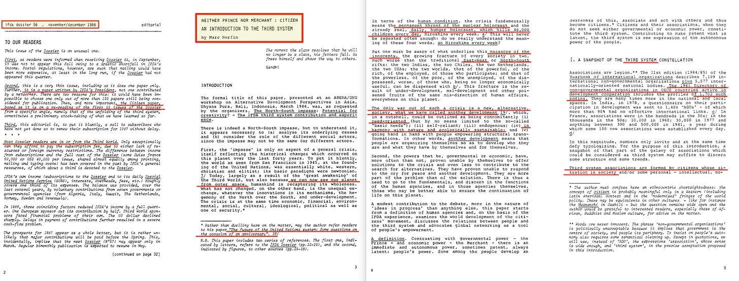 Αλλά - θα μπορούσατε να διακόψετε- δεν έχουμε ακόμη έναν κατάλληλο ορισμό για το Τρίτο Σύστημα. Και αυτό είναι ένα δίκαιο επιχείρημα. Ορίστε λοιπόν: το ειδικό τεύχος του IFDA Dossier No. 5616, όπου ο ίδιος ο Marc Nerfin το εξηγεί με αρκετή λεπτομέρεια.