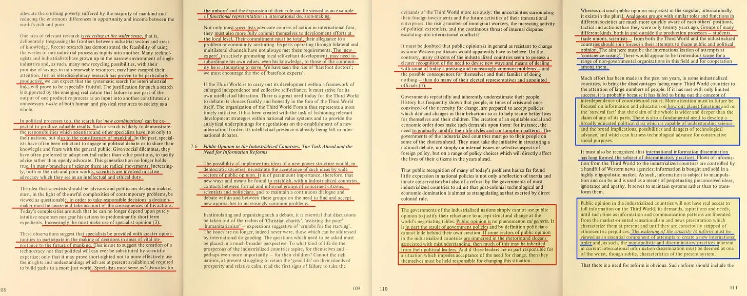 Η συζήτηση Βορρά-Νότου καλύπτεται λεπτομερέστερα στο αναμφισβήτητα πιο βαρετό κεφάλαιο της παρτίδας. Αλλά δεν μπορώ να μην το ανασύρω -εμφανώς επειδή είναι γραμμένο από καμία άλλη παρά την Barbara “Spaceship Earth” Ward. Ναι, η ίδια Barbara Ward που συνέγραψε το βιβλίο Only One Earth [12] μαζί με τον René Dubos [13] του Rockefeller το 1972, προτού ενταχθεί στο Conservation Foundation το 1976 - η άψογα λεπτομερής έκθεση του 1980 για την εμπορευματοποίηση του αέρα είναι, ειλικρινά, μάλλον αποκαλυπτική.