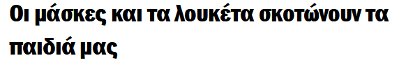 Περισσότερες σχετικές ειδήσεις σχετικά με τις μάσκες, τα λουκέτα και άλλους περιορισμούς λόγω της πανδημίας μπορείτε να βρείτε στο Genocide.news.