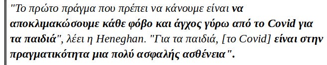 Σε ένα άλλο επεισόδιο της συνέντευξης, ο καθηγητής Carl Heneghan, διευθυντής του Κέντρου Ιατρικής Βασισμένης σε Στοιχεία του Πανεπιστημίου της Οξφόρδης, εξήγησε ότι τα παιδιά υφίστανται επίσης ζημιά από τη συνεχή "δίαιτα" φόβου που τους διοχετεύουν οι κυβερνήσεις και τα μέσα ενημέρωσης.