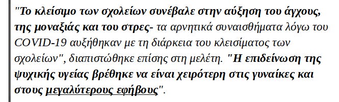 Μελέτη της 20ής Δεκεμβρίου από τα Κέντρα Ελέγχου και Πρόληψης Νοσημάτων των ΗΠΑ (CDC) διαπίστωσε ότι οι επισκέψεις ψυχικής υγείας εκτοξεύτηκαν κατά 24% μεταξύ των παιδιών ηλικίας 5 έως 11 ετών και κατά 31% στους νέους ηλικίας 12 έως 17 ετών, μόλις η Ψευτο-πανδημία ξεκίνησε επίσημα στις αρχές του 2020.