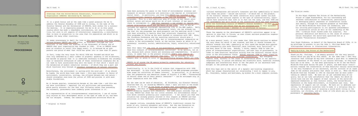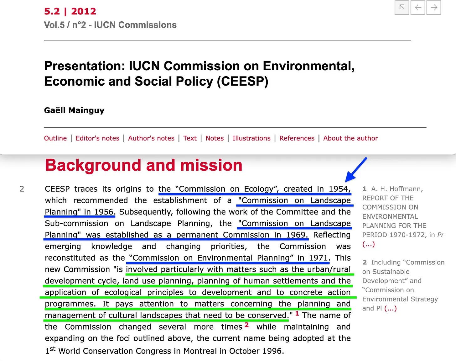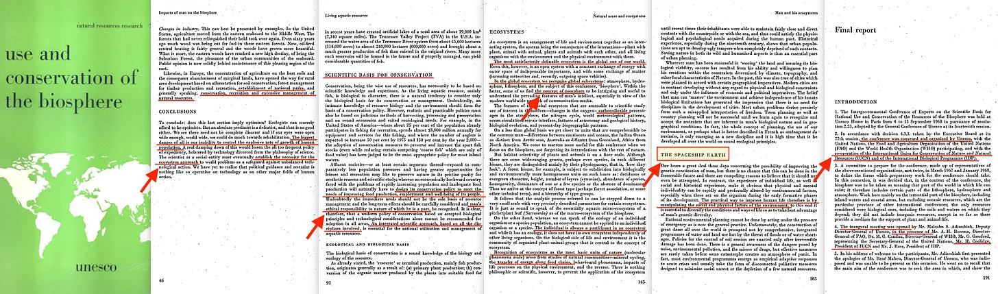 ... και η διάσκεψη της UNESCO για τη βιόσφαιρα του 1968 [34] με αναφορές στην IUCN και... σχεδόν όλα όσα έχουν σημασία στο σύγχρονο πλαίσιο...