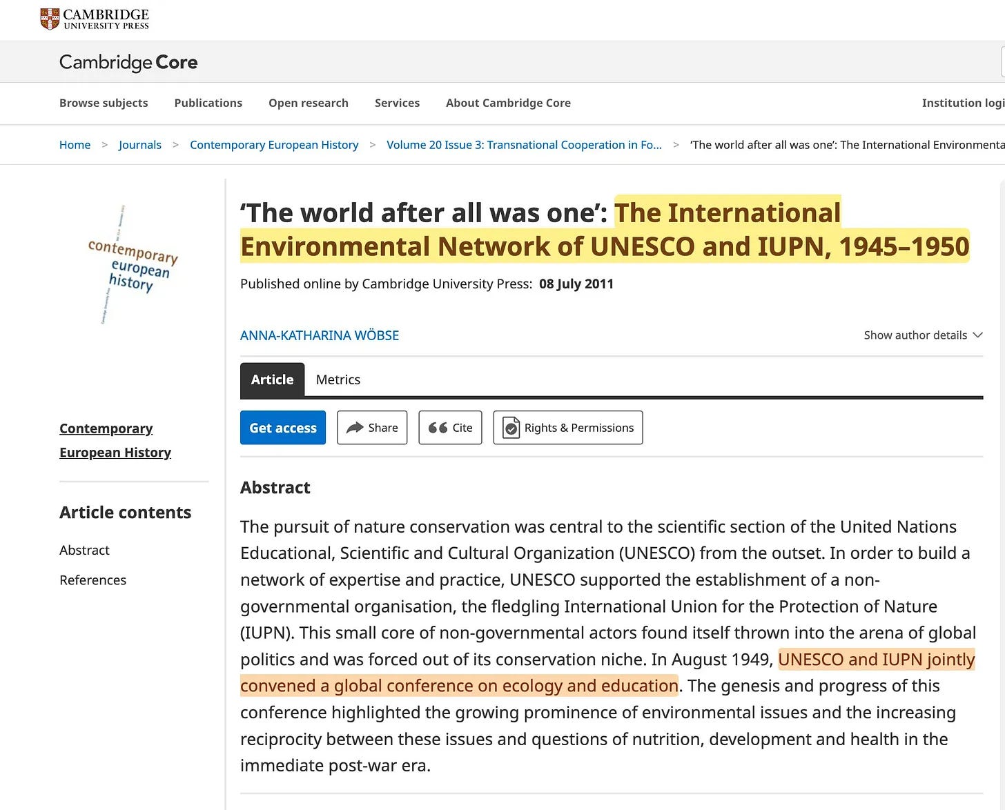 ... και αν σας λείπει αναγνωστικό υλικό, εδώ «Ο κόσμος τελικά ήταν ένας» [40] , που αφορά την UNESCO και το IUPN όπως ονομάζονταν στα πρώτα τους χρόνια.