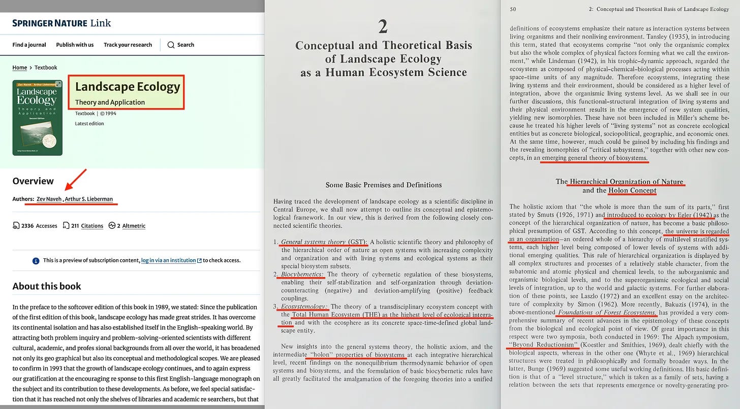 Ο Zev Naveh είναι ευρέως αναγνωρισμένος για τη συμβολή του στην Οικολογία Τοπίου [14], η οποία μπορεί να γίνει ευρέως κατανοητή ως ενσωμάτωση της συστημικής προσέγγισης του HT Odum στην Οικολογία Συστημάτων [15] με το πρωτοποριακό έργο του HW Odum για τη χωρική εστίαση και τις περιφερειακές προοπτικές στον Περιφερειακό [16].