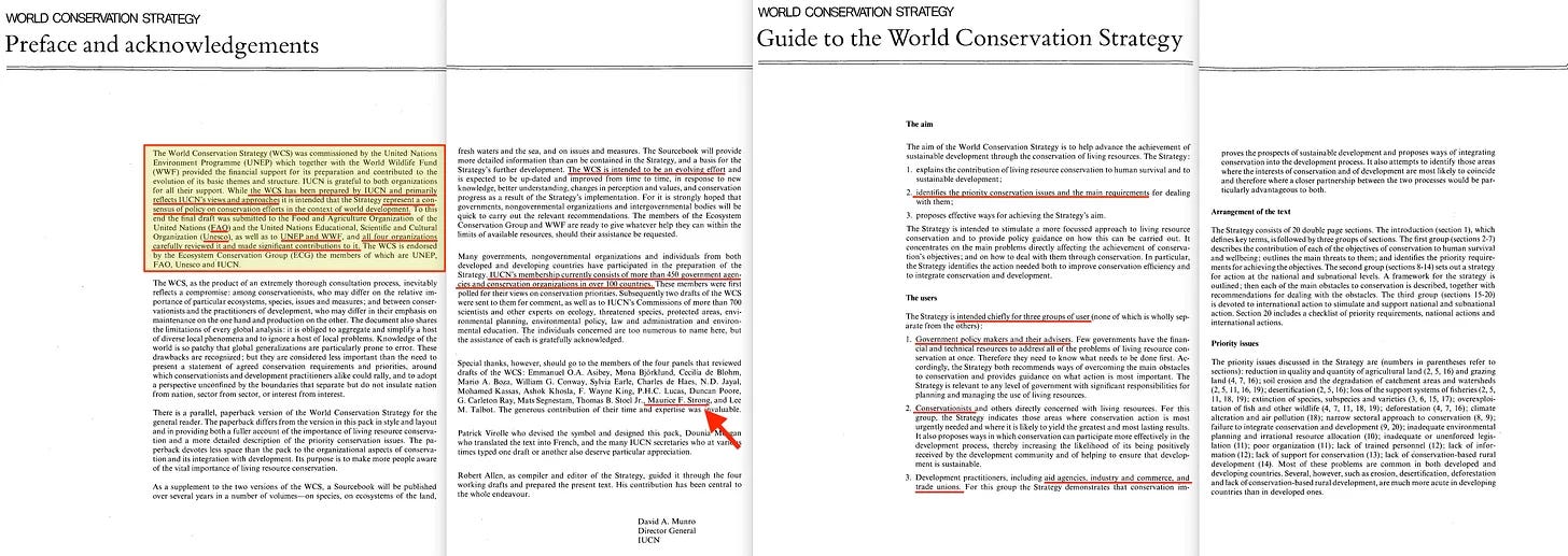 Στις πρώτες σελίδες γίνεται σαφές ότι «Το WCS προορίζεται να είναι μια εξελισσόμενη προσπάθεια», και στη συνέχεια παραθέτει το UNEP, τον FAO και το WWF, και τέλος τον Maurice Strong.
