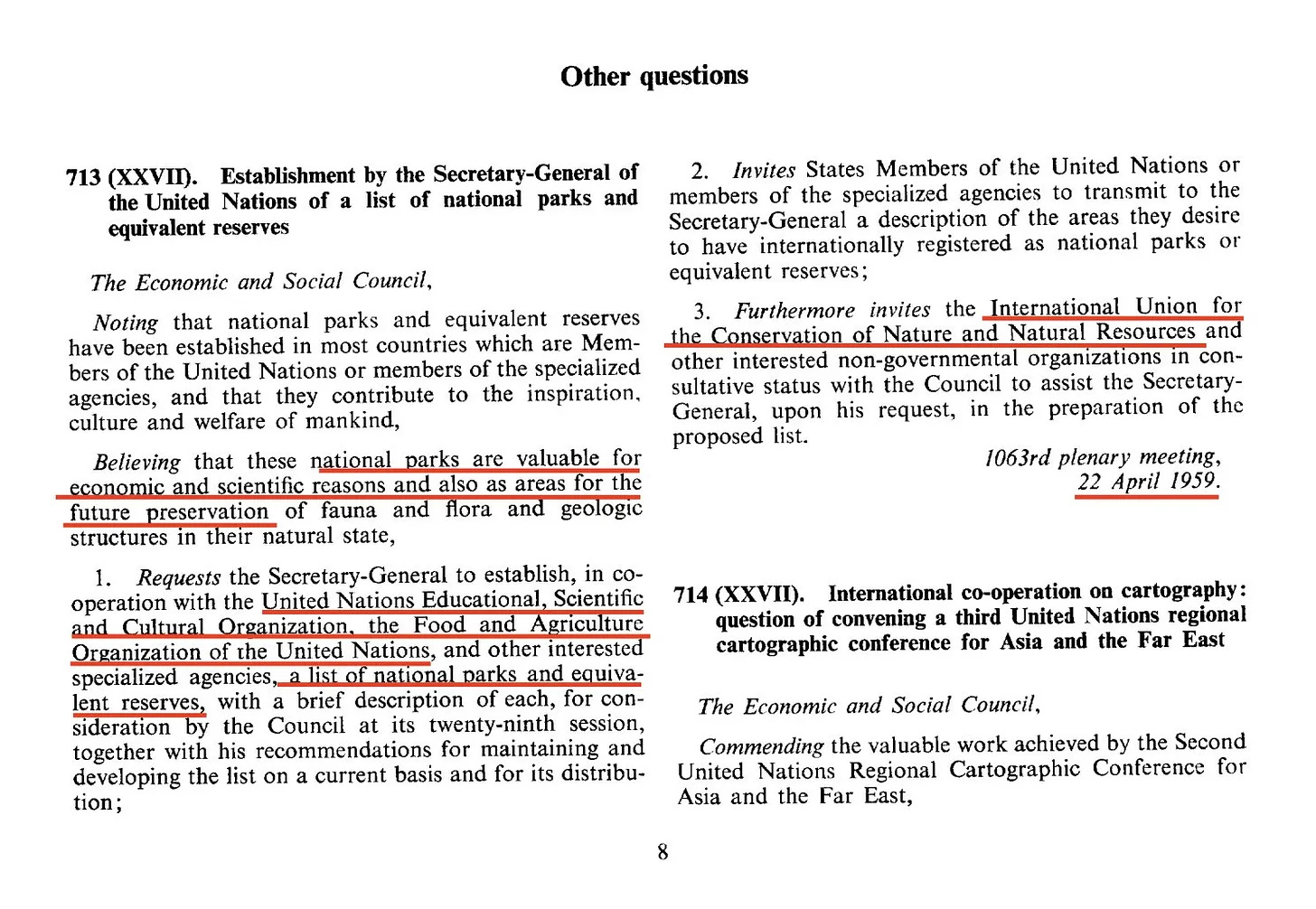 Η οποία μπορεί να ανατρέξει πιο πίσω στο 1959 [37], και στην έκκληση των Ηνωμένων Εθνών για τη δημιουργία εθνικών πάρκων και καταφυγίων...