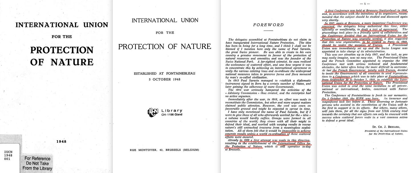 Το 1956, η Διεθνής Ένωση για την Προστασία της Φύσης συγχωνεύθηκε με το Διεθνές Γραφείο για την Προστασία της Φύσης [42] , το οποίο είχε ιδρυθεί το 1928 από τη Διεθνή Ένωση Βιολογικών Επιστημών (IUBS), έναν οργανισμό που ιδρύθηκε το 1919.