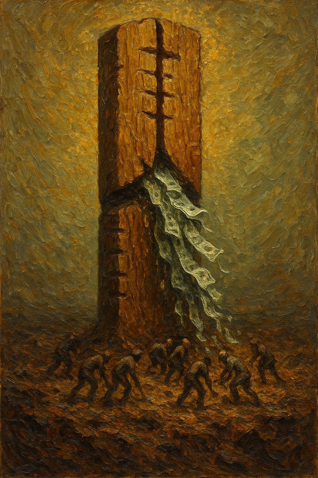 Οι τράπεζες δεν δανείζουν τίποτα πραγματικό - απλά πληκτρολογούν αριθμούς σε υπολογιστές, δημιουργώντας σκλάβους του χρέους που πρέπει να αποπληρώσουν το κεφάλαιο συν τους τόκους μέσω πραγματικής εργασίας, μεταφέροντας πραγματικό πλούτο σε παράσιτα που δεν παρήγαγαν τίποτα. Όταν τα δάνεια αποπληρώνονται, τα χρήματα που δημιουργήθηκαν εξαφανίζονται, αλλά οι τράπεζες κρατούν τους τόκους, απαιτώντας τη δημιουργία όλο και περισσότερου χρέους για να διατηρήσουν την προσφορά χρήματος. Ο Sir Josiah Stamp, διευθυντής της Τράπεζας της Αγγλίας, ομολόγησε: «Η τραπεζική δημιουργήθηκε με αδικία και γεννήθηκε στην αμαρτία... Οι τραπεζίτες είναι οι ιδιοκτήτες της γης. Αφαιρέστε τους την, αλλά αφήστε τους τη δύναμη να δημιουργούν καταθέσεις, και με ένα άγγιγμα της πένας θα δημιουργήσουν αρκετές καταθέσεις για να την αγοράσουν ξανά». Αυτή η μαθηματική αδυναμία εξασφαλίζει την τελική κατάρρευση - το συνολικό χρέος υπερβαίνει πάντα τη συνολική προσφορά χρήματος, επειδή δεν δημιουργήθηκαν ποτέ τόκοι, μόνο κεφάλαιο, εγγυώντας την κοινωνική υποδούλωση σε αέναο χρέος που δεν μπορεί ποτέ να αποπληρωθεί.