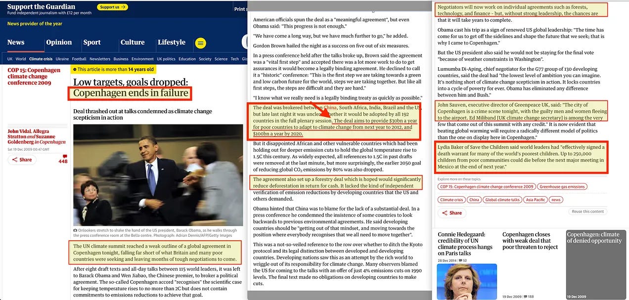 «Η συμφωνία αποσκοπεί στην παροχή 30 δισ. δολαρίων ετησίως στις φτωχές χώρες για την προσαρμογή στην κλιματική αλλαγή από το επόμενο έτος έως το 2012 και 100 δισ. δολάρια ετησίως έως το 2020»