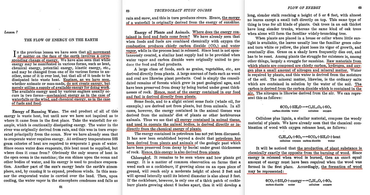 Η πρωταρχική έκθεση της Technocracy Inc ήρθε μέσω του «Technocracy Study Course» [43], που κυκλοφόρησε αρχικά το 1936 και από το οποίο μαθαίνουμε -