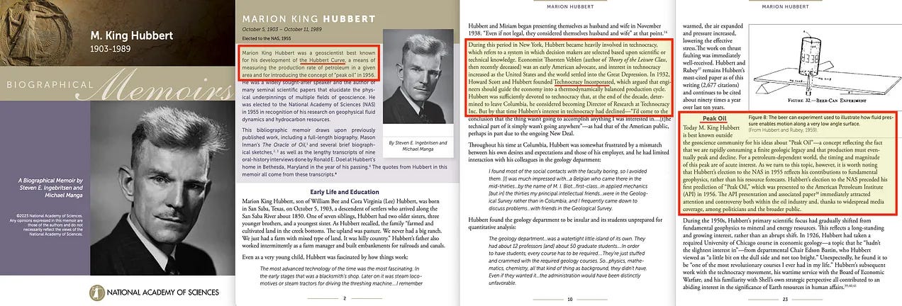 Και σε αυτό που μπορεί να χαρακτηριστεί καλύτερα ως μια ακόμη εκπληκτική σύμπτωση, ο κύριος συγγραφέας εκείνης της μελέτης δεν ήταν άλλος από τον Marion King Hubbert - τον ίδιο άνθρωπο που πρότεινε τη θεωρία του «Peak Oil» το 1956 [44], η οποία έμμεσα πρότεινε ότι... έπρεπε να μειώσουμε την κατανάλωση πετρελαίου.