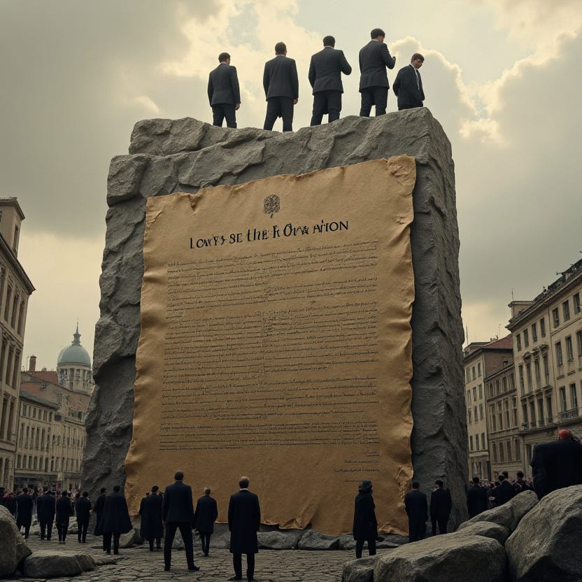 Οι ολέθριες συμφωνίες και οι συμβάσεις που μπορεί να υπέγραψε μία προδοτική και μειοδοτική κυβέρνηση δεσμεύουν και υπερισχύουν των νόμων της πολιτείας, τοποθετώντας εκ των πραγμάτων μία θηλιά στο λαιμό των πολιτών, παρόντων και μελλοντικών.