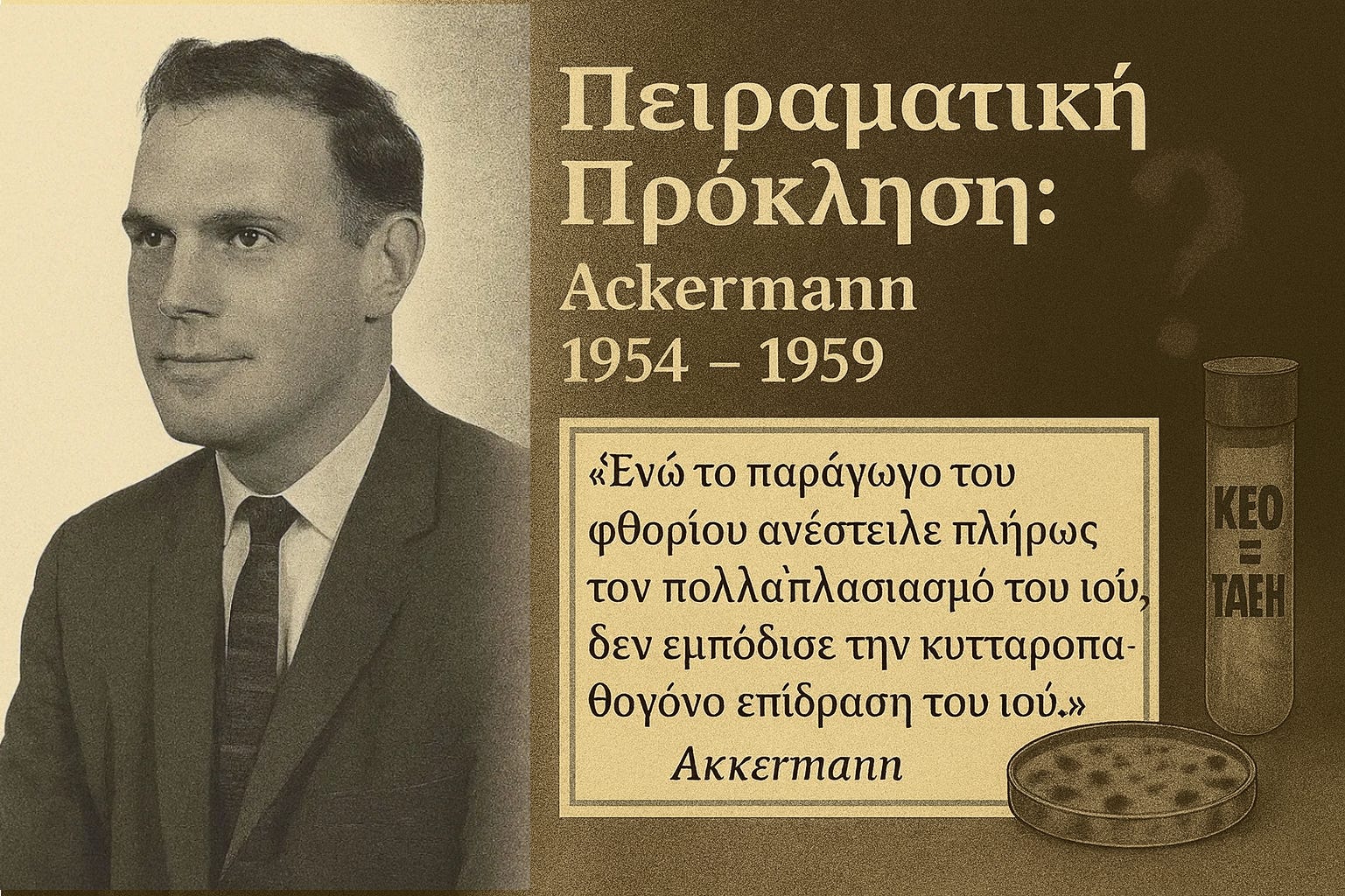 Ο Ackermann έθεσε ρητά την υπόθεση ότι η CPE μπορεί ή δεν μπορεί να είναι παράλληλη με τον «ιϊκό» πολλαπλασιασμό, διαμορφώνοντας τα πειράματα ως άμεση δοκιμή της κλασικής υπόθεσης ότι CPE = «ιϊκή» ανάπτυξη. Κατά τη διάρκεια των δοκιμών του, παρατήρησε ότι η κυτταρική καταστροφή συνέβη χωρίς καμία εμφανή « ιϊκή » αύξηση:
