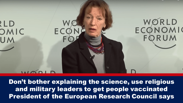 Η Πρόεδρος Του Ευρωπαϊκού Συμβουλίου Έρευνας : “Mην Μπαίνετε Στον Κόπο Να Εξηγήσετε Την "Επιστήμη", Απλά Χρησιμοποιήστε Θρησκευτικούς Και Στρατιωτικούς Ηγέτες Για Να Εμβολιάσετε Τους Ανθρώπους”