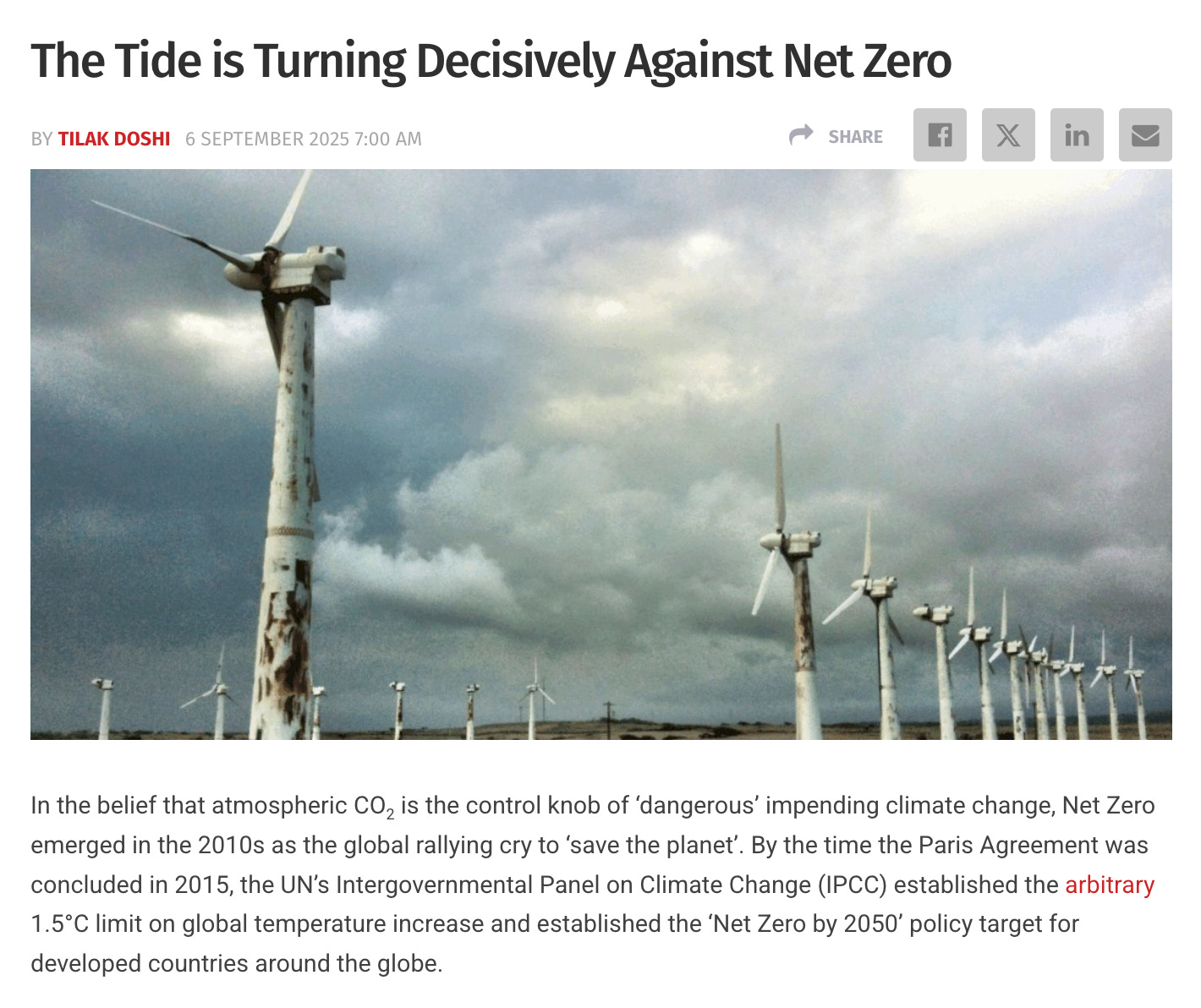 Αυτό το άρθρο δημοσιεύθηκε για πρώτη φορά στο The Daily Sceptic [ https://dailysceptic.org/2025/09/06/the-tide-is-turning-decisively-against-net-zero/ ]