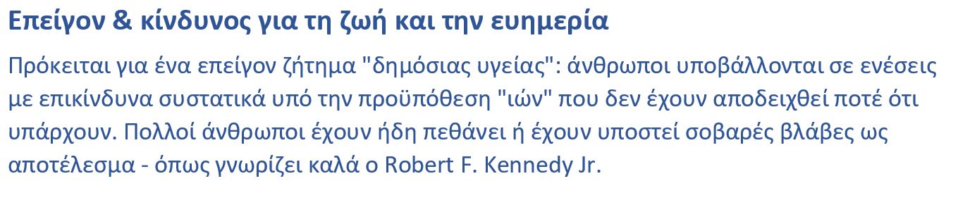 - που αποδεικνύουν επιστημονικά τη μετάδοση της ασθένειας/των συμπτωμάτων που υποτίθεται ότι προκαλούνται από οποιονδήποτε από τους δύο υποτιθέμενους ιούς, ή
