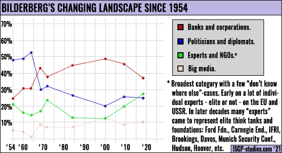 Τριμερής Επιτροπή: 64% (38/59) επίσημη ιστορική συμμετοχή, με 65% (+1 άτομο) γνωστή συμμετοχή.