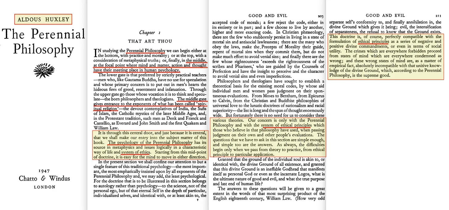 «Η ψυχολογία της Αιώνιας Φιλοσοφίας έχει την πηγή της στη μεταφυσική και καταλήγει λογικά σε έναν χαρακτηριστικό τρόπο ζωής και ένα σύστημα ηθικής».