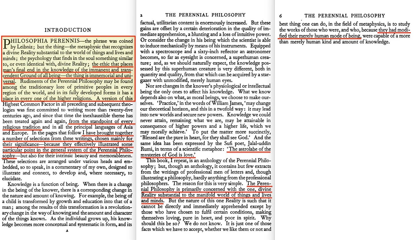 «... η ψυχολογία που βρίσκει στην ψυχή κάτι παρόμοιο, ή ακόμη και ταυτόσημο με τη θεία Πραγματικότητα- η ηθική που τοποθετεί τον τελικό σκοπό του ανθρώπου στη γνώση του ενυπάρχοντος και υπερβατικού Λόγου κάθε ύπαρξης - το πράγμα είναι πανάρχαιο και οικουμενικό».
